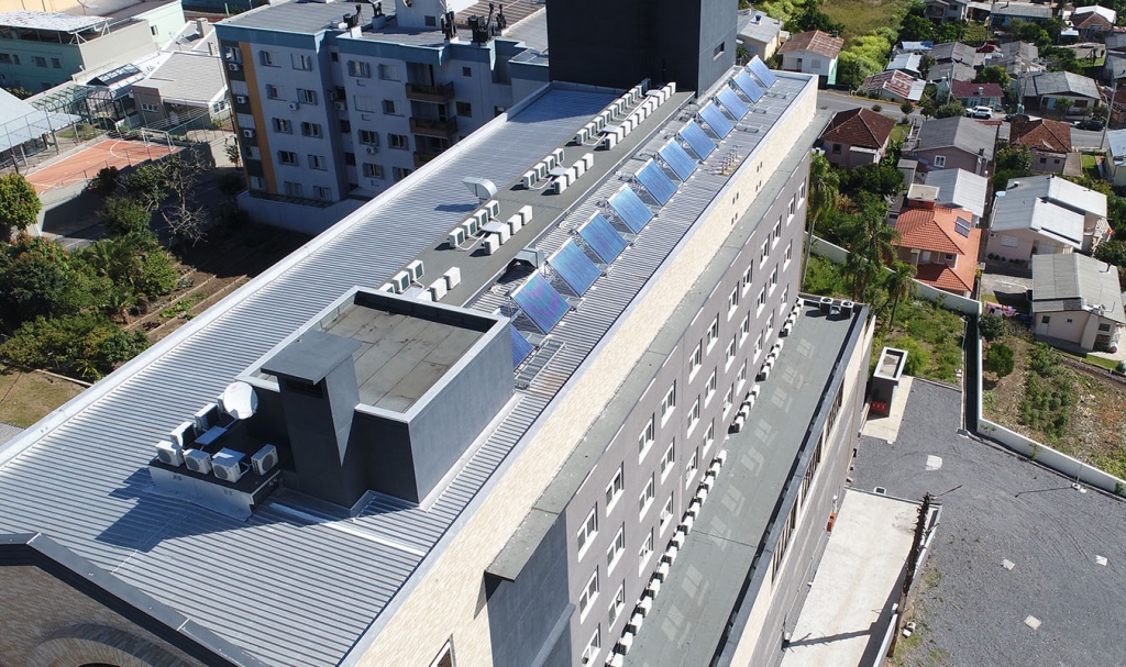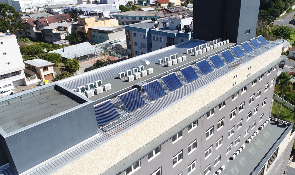 Montados em tamanhos modulados com baterias de baixa e alta pressão são normalmente são instalados sobre o telhado da residência.